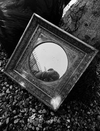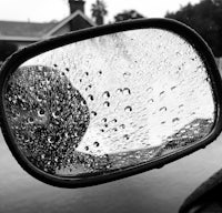 Morning walks with “The Dog”. My favorite type of weather. Gloomy, slight drizzle. A distinct feeling of hope, as a sunny day awaits just behind the clouds. (Like my indistinguishable face in the side mirror that I borrowed as a subject from my neighbors motorcycle). Not running from my black cloud. Embracing the solace I’ve found.